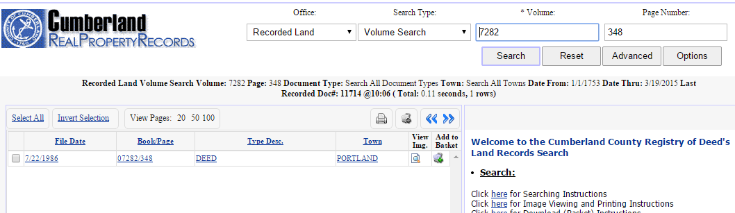 numbers from the card. We’re going to find the deed for this property at the Registry of Deeds. Here’s Cumberland County’s.